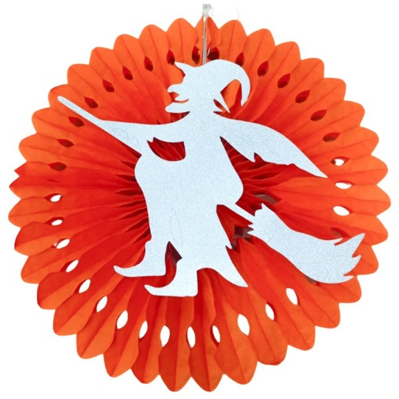 • Material: Feito de papel, com fundo redondo laranja que proporciona estabilidade, permitindo que a bruxa fique firme em qualquer superfície.