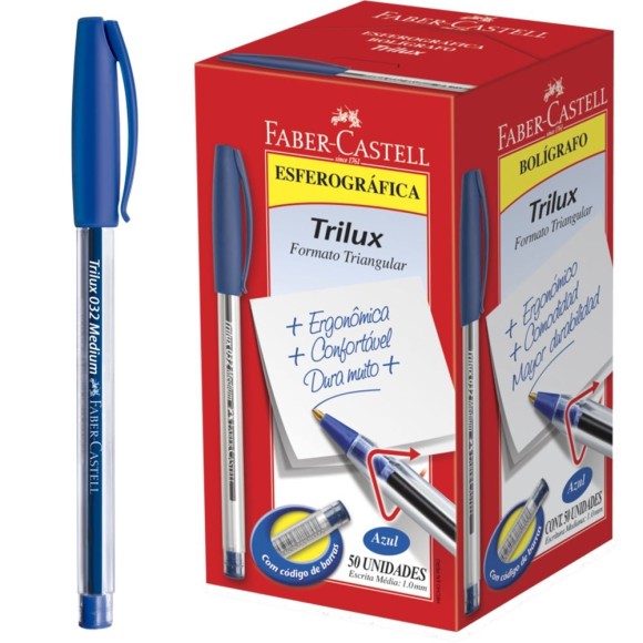 Caneta Esferográfica 1.0mm Trilux 032 Azul c/50 Faber Castell